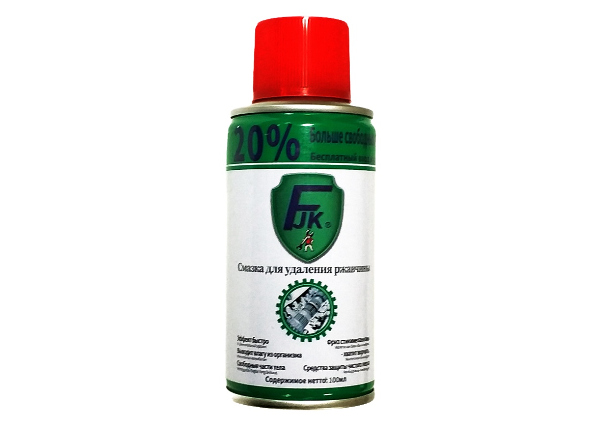 - Средство для удаления ржавчины, очистки и смазки FJK, спрей, объем 100мл