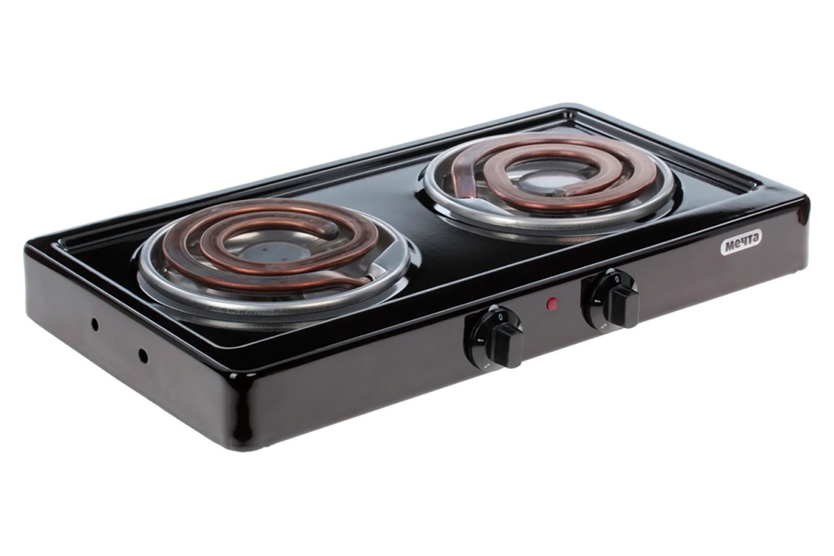 - Плита настольная электрическая 2 конфорки СПИРАЛЬ "Мечта 211T" ЧЕРНАЯ 2000Вт