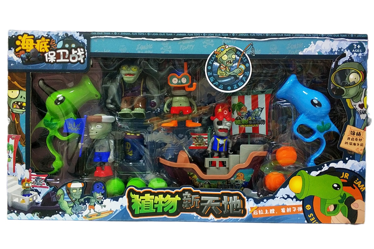 - Фигурки НАБОР Герои ПЛАНЕТЫ ЗОМБИ PLANTS ZOMBIES 4,5-11 см 6 шт + 2 пистолета + снаряды (в коробке)