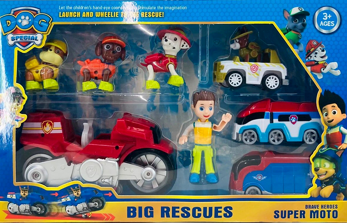 - НАБОР Щенячий патруль 5 героев + 4 транспорта PB9907, в коробке