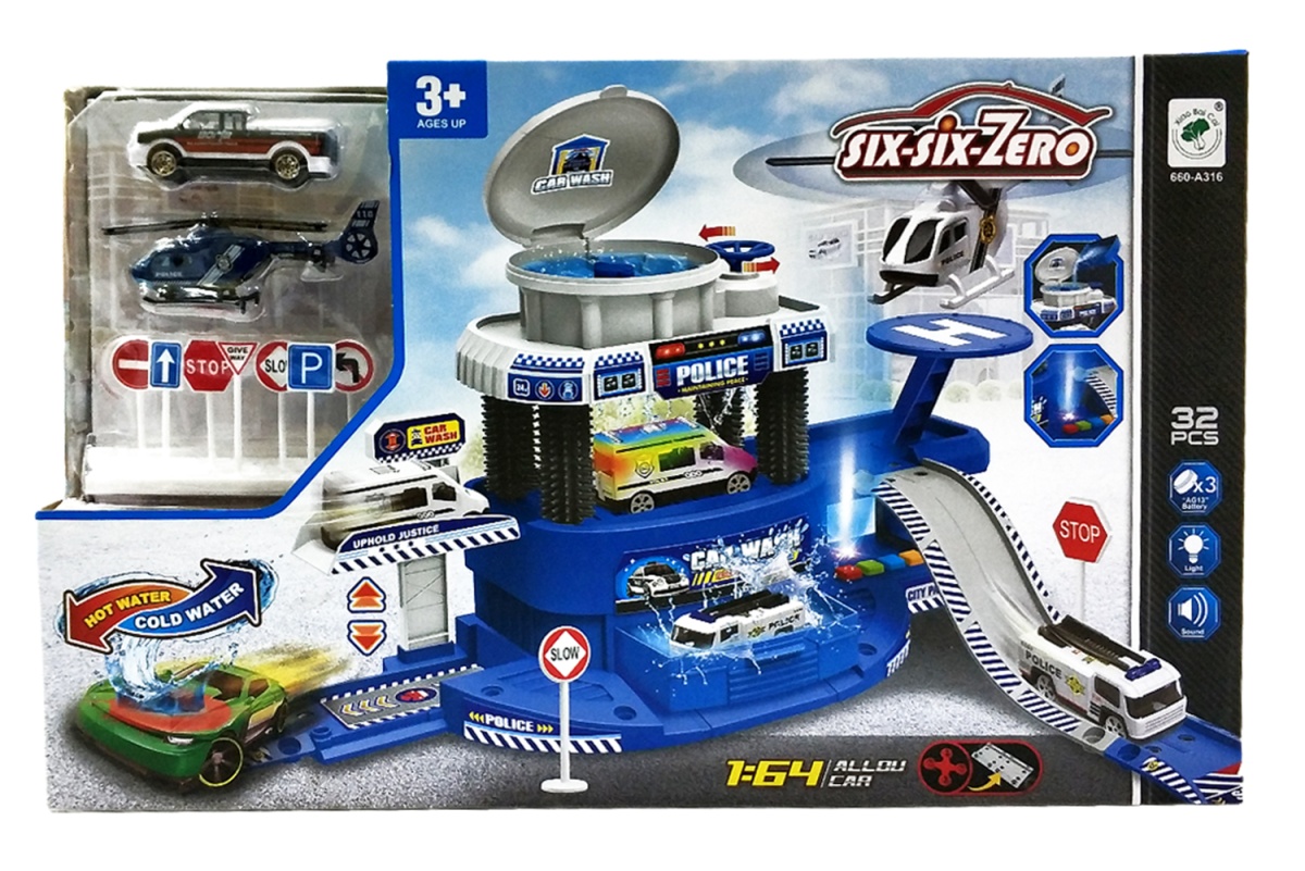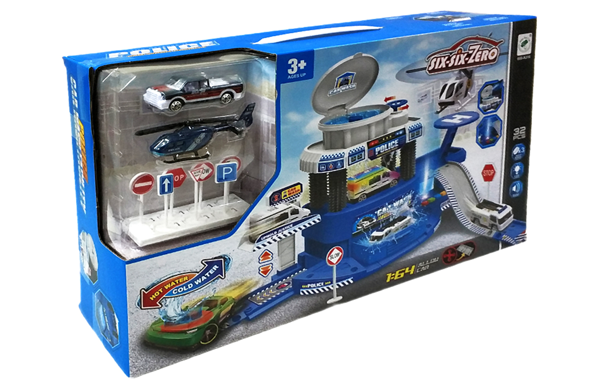 - Парковка "Полицейская Автомойка" POLICE CAR WASH + 2 машинки меняют цвет, 1:64, звук, свет, 32 дет