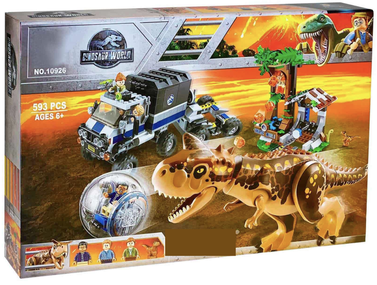 - Конструктор BELA Dinosaur World "Побег в гиросфере от карнотавра" 10926, 593 детали