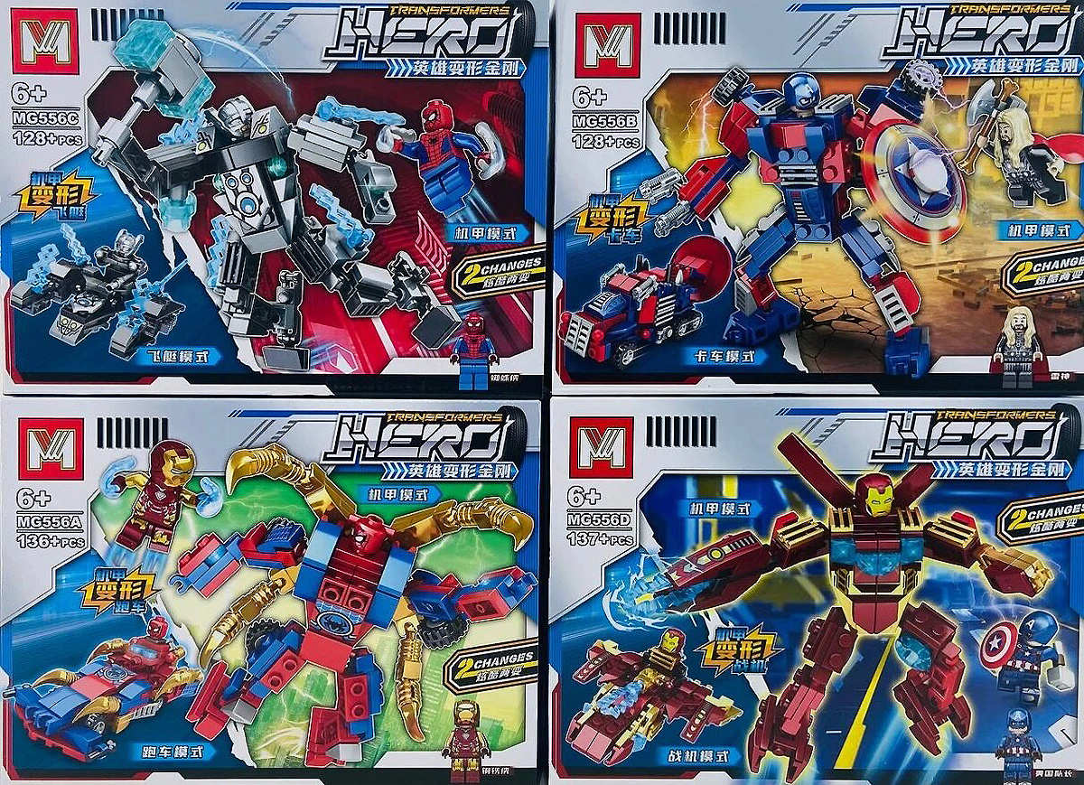 - Конструктор MG HEROES ASSEMBLE "Супергерои трансформеры: 2 изменения" MG556, 128-137 деталей