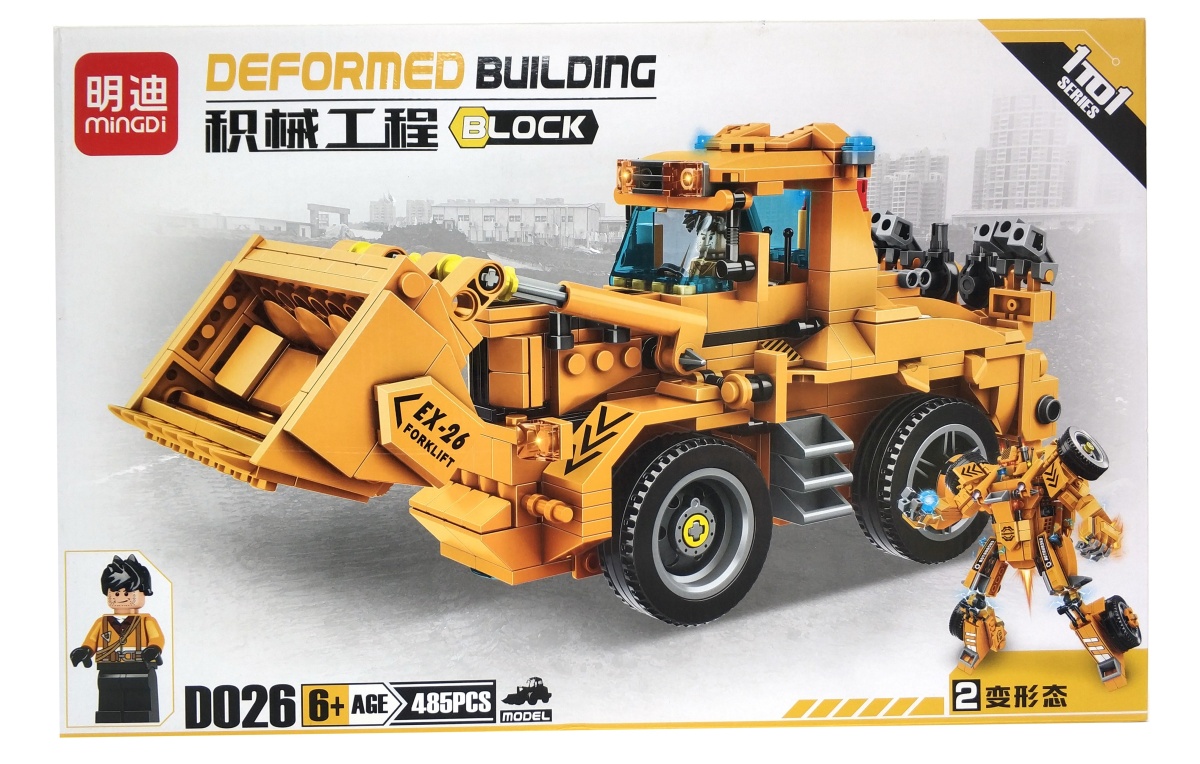 - Конструктор MINGDI Deformed Building ТЕХНИК "Бульдозер - трансформер" D026, 485 деталей