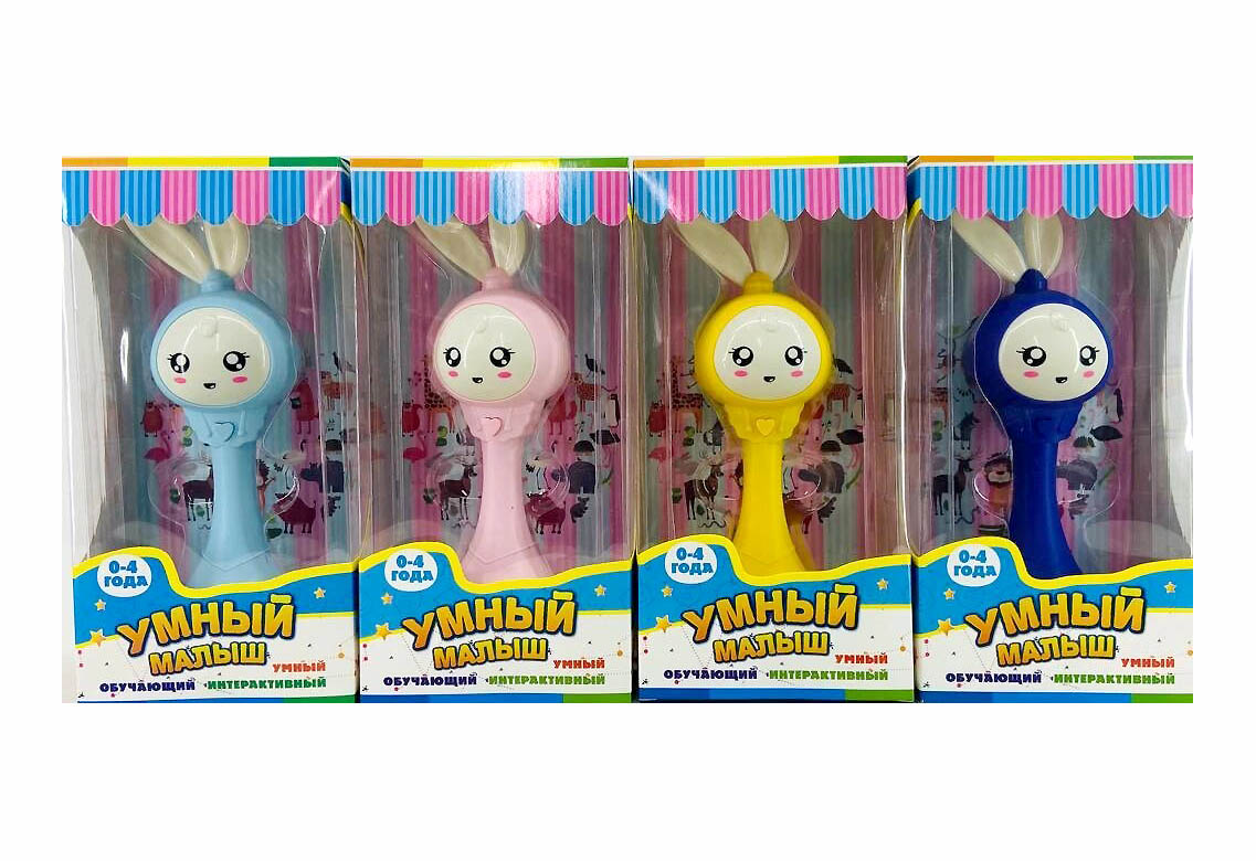 - Интерактивная погремушка "УМНЫЙ МАЛЫШ", 10 сказок,12 песен, Свет, Звук 22х6х6 см