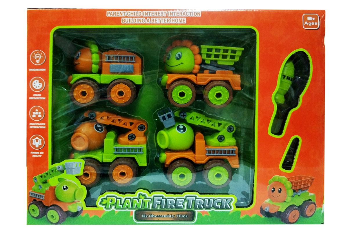 - Машина конструктор НАБОР 4в1 + отвертка ЗОМБИ ПРОТИВ РАСТЕНИЙ PLANTS FIRETRUCK 40*31*9 см