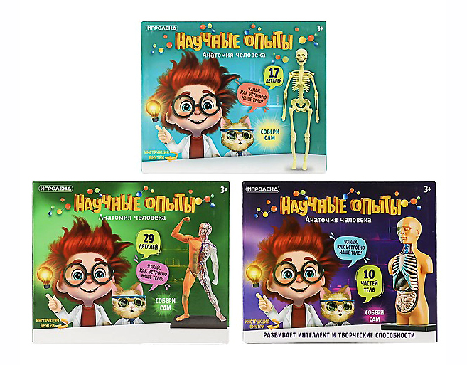 - ИГРОЛЕНД Научные опыты "Анатомия человека", в коробке 22,5х16,6х6см
