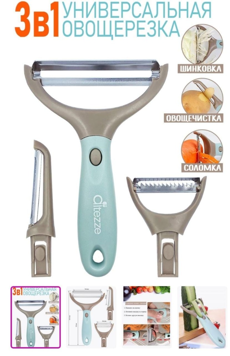 - Овощечистка универсальная ALTEZZE 3 in 1 с 3-мя сменными насадками