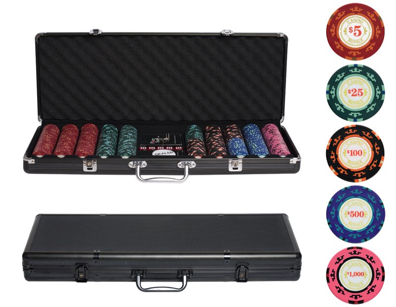 - Набор для покера Casino Royale POKER SET в алюминиевом кейсе 500 фишек + 2 колоды + 5 кубиков