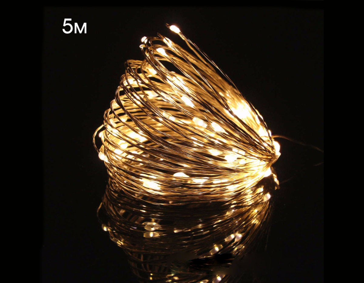 - Гирлянда светодиодная Огонек OG-LDG06 проволочная, LED Белая Теплая, 5 метров, питание 2*АА
