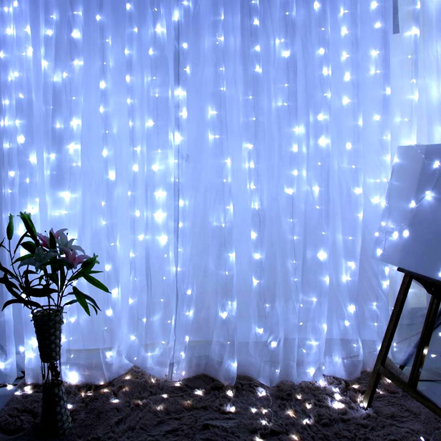 - Гирлянда светодиодная "ШТОРА" БЕЛАЯ ХОЛОДНАЯ, размер 3х3 м, 225 ламп