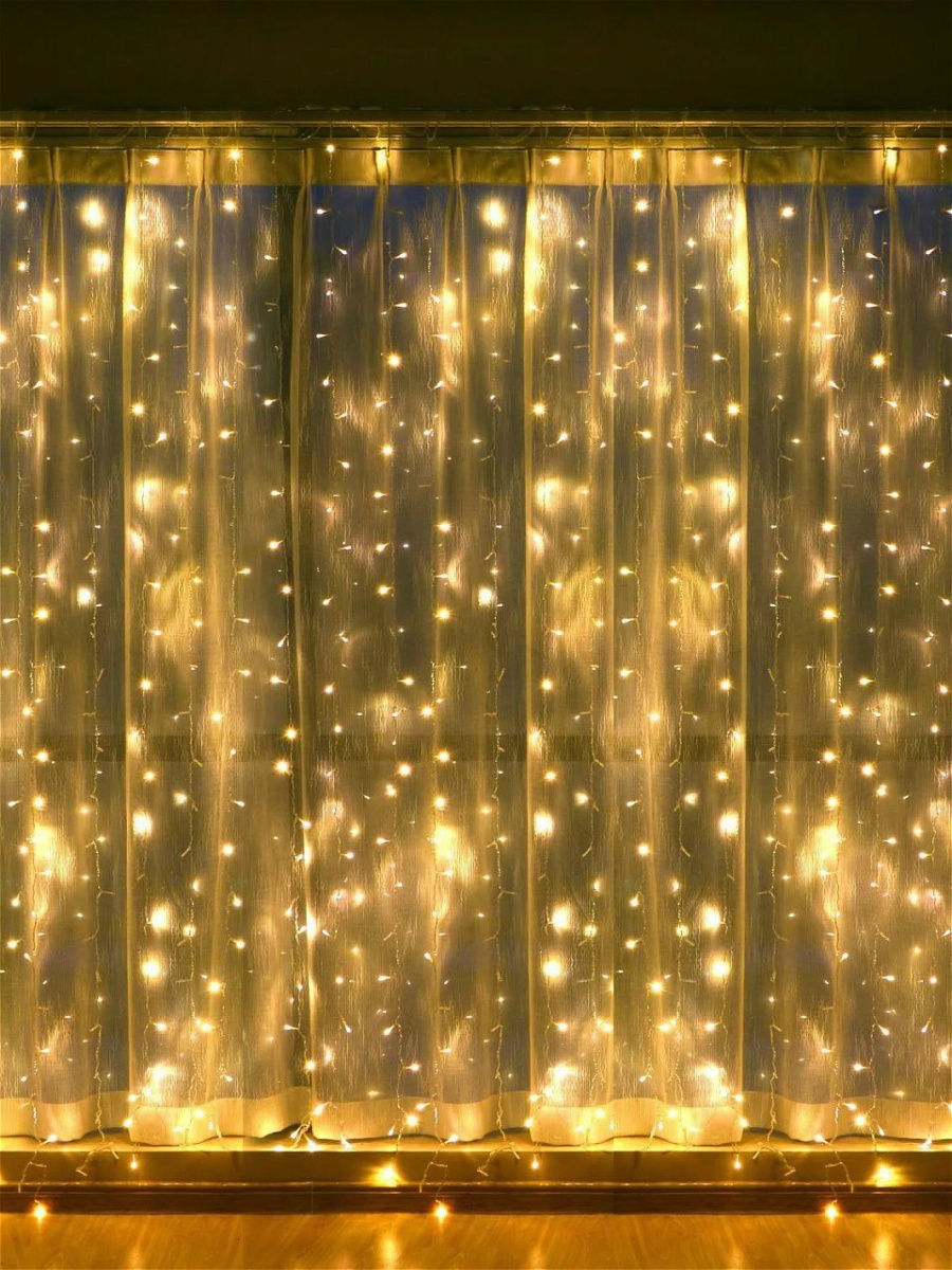 - Гирлянда "ВОДОПАД" БЕЛАЯ ТЕПЛАЯ, размер 3*3 метра, 480L ламп (коробка)
