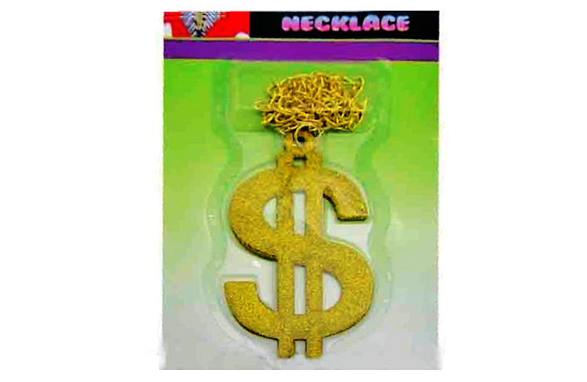 - Медальон ''Доллар'' с блестками-2 на цепочке, пластмасса, металл, размер 13,5*7 см