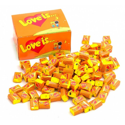 - LOVE IS... Жевательная резинка ЛАВ ИЗ со вкусом АНАНАСА И АПЕЛЬСИНА 4,2г (100 шт/уп) оранжевая короб