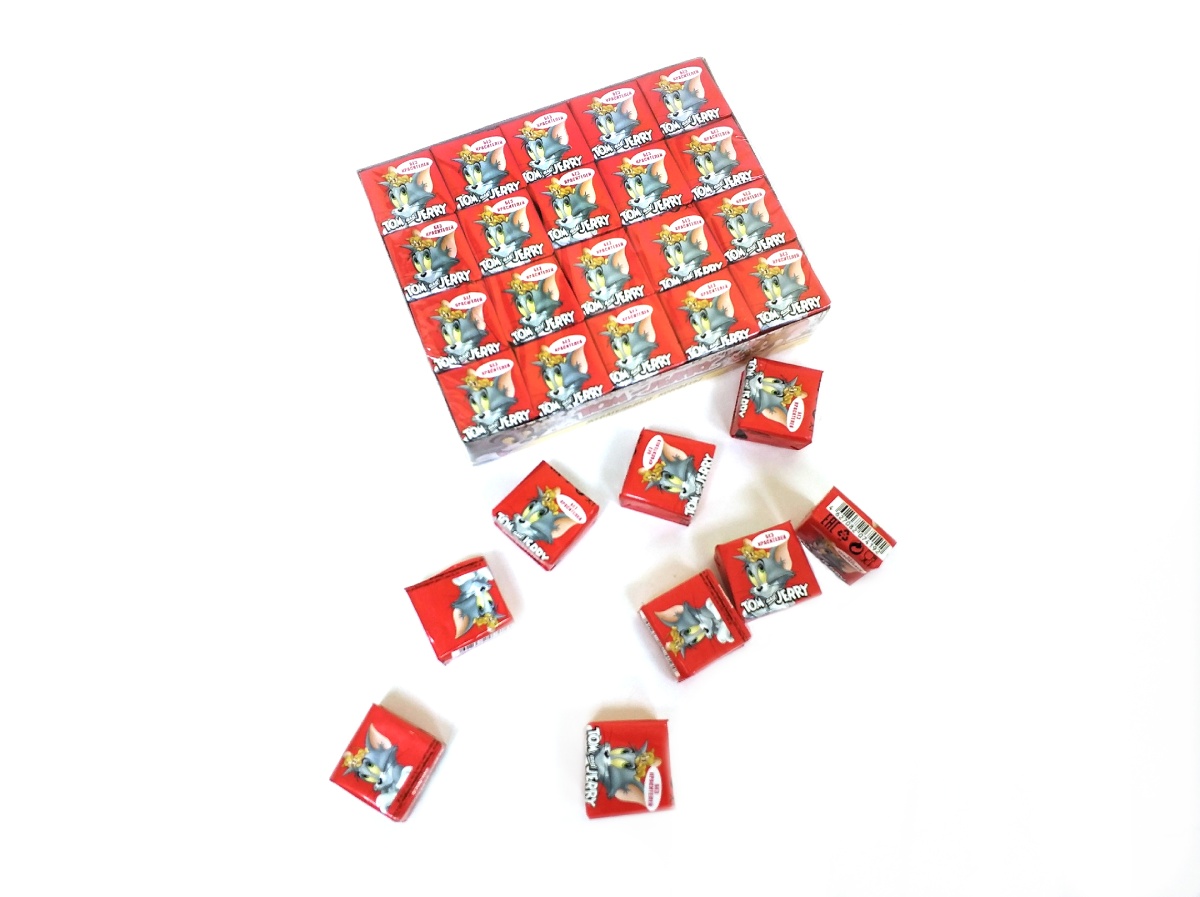 - Жевательная конфета TOM and JERRY с картинками со вкусом Клубника 18*40*11,5г