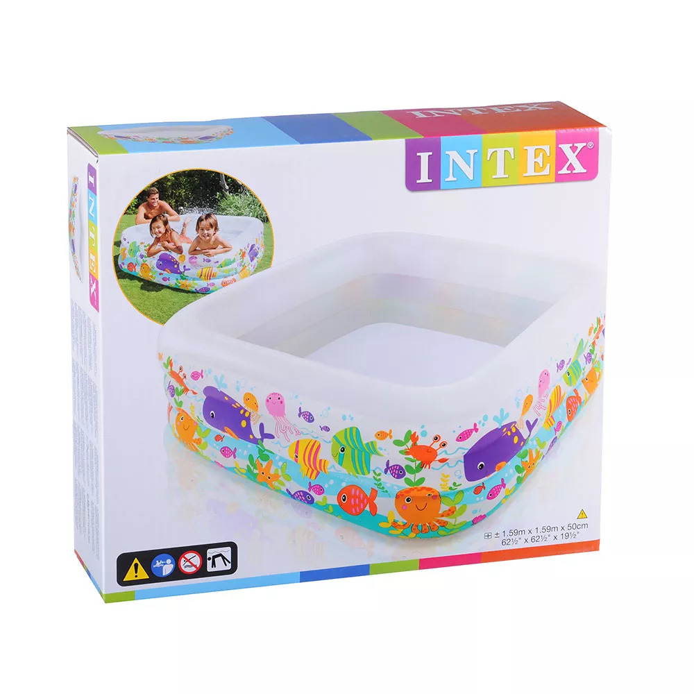 - Детский надувной бассейн INTEX "Аквариум" 159х159х50см, 340л, от 3 лет