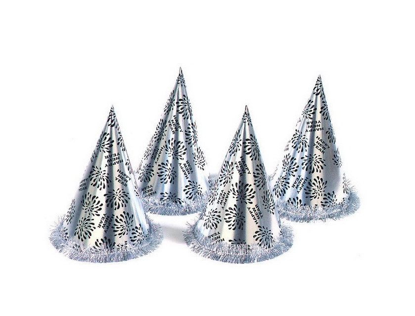 - Колпак Happy New Year! серебряная бумага 7980G, высота 27 см