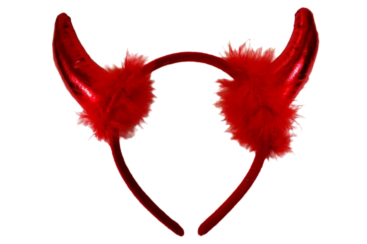- Рога блестящие красные на ободке, полиэстер, пух, размер 22*20 см