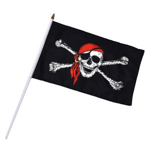 - Флаг Пирата черный (череп с красной банданой), размер 16 х 23 см