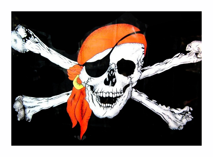- Флаг пиратский большой (череп с саблями), черный, 140 х 90см