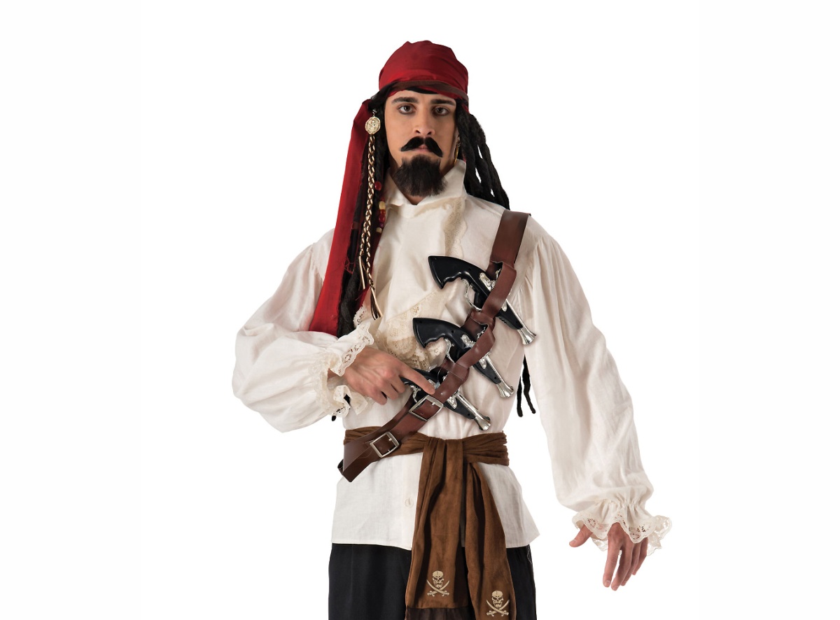 - Пояс пирата для пистолетов (кобура) ВА371 через плечо коричневый кожзам, 36*24 см + 3 пистолета