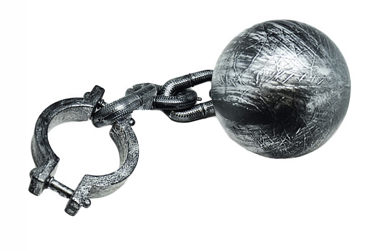 - Гиря на ногу (кандалы узника), цвет серебро, длина 50 см