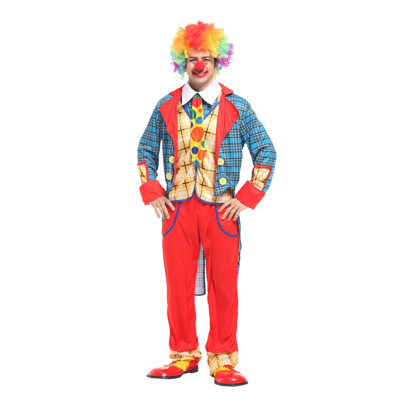 - Костюм Клоунский смокинг (куртка, топ, брюки, клоунский нос), разноцветный полиэстер, размер М