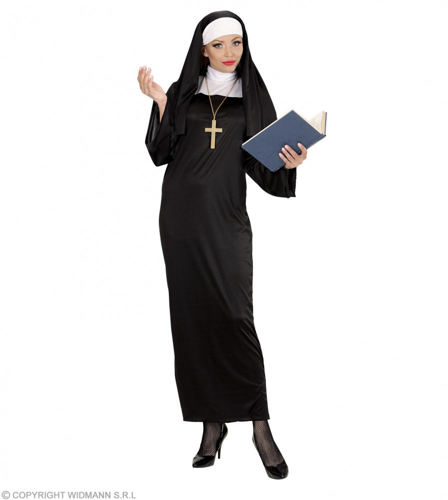 - Костюм Монашки (туника, головной убор, крест) 01323, черный полиэстер, размер L, рост 175-185 см