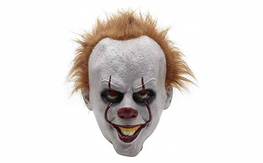 - Маска Пеннивайз -2 белый латекс, рыжий искусственный мех, ткань, размер 28х20 см