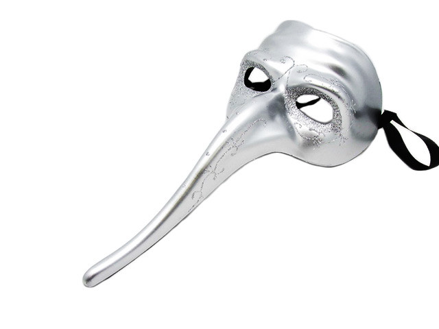 - Маска Венецианская серебряная с длинным носом и узором, без размера