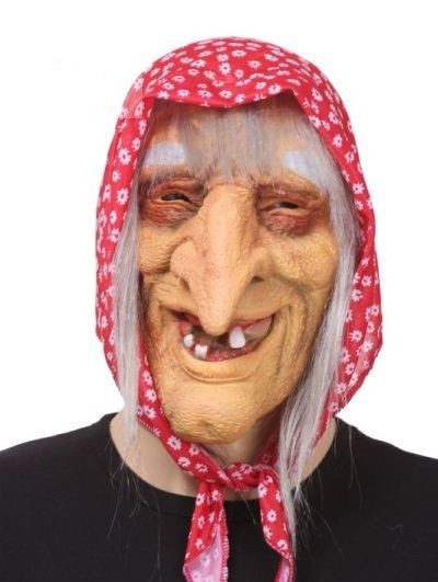 - Маска Баба Яга в цветном платке, латекс, ткань полиэстер, без размера