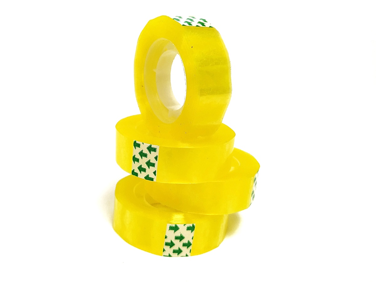 - Скотч канцелярский желтый узкий 1,5см х 30м, 12 шт/уп